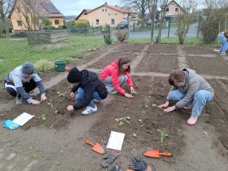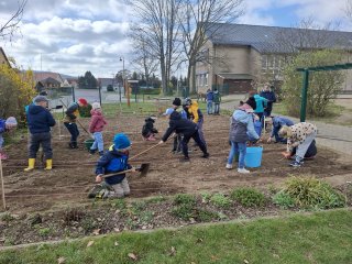 Die Kinder der zweiten Klasse bereiteten die Beete für die Bepflanzung und Aussat vor.